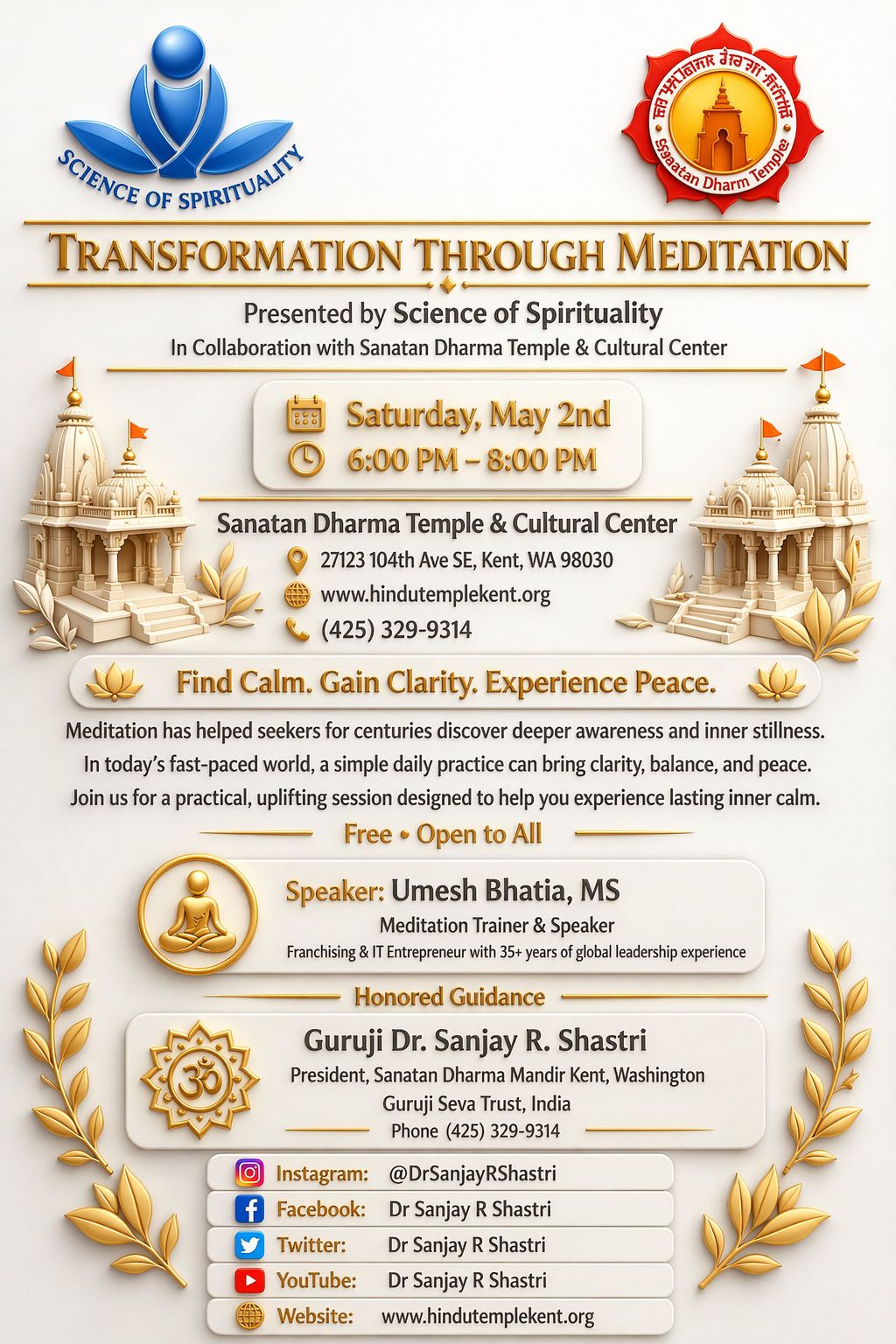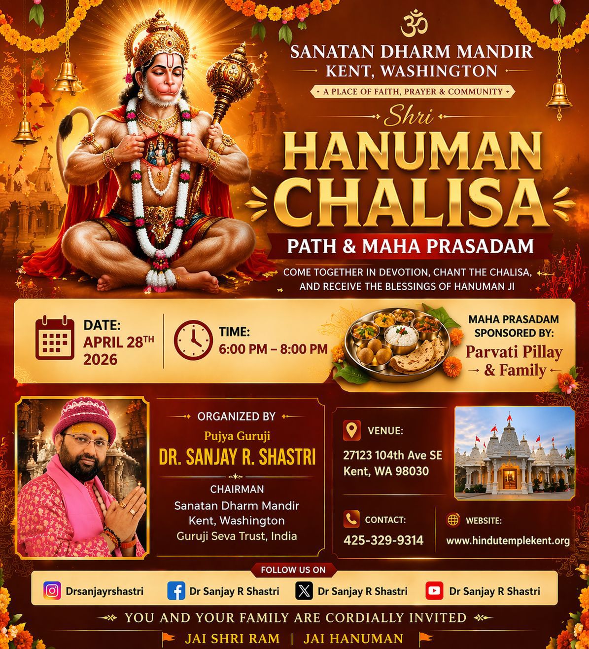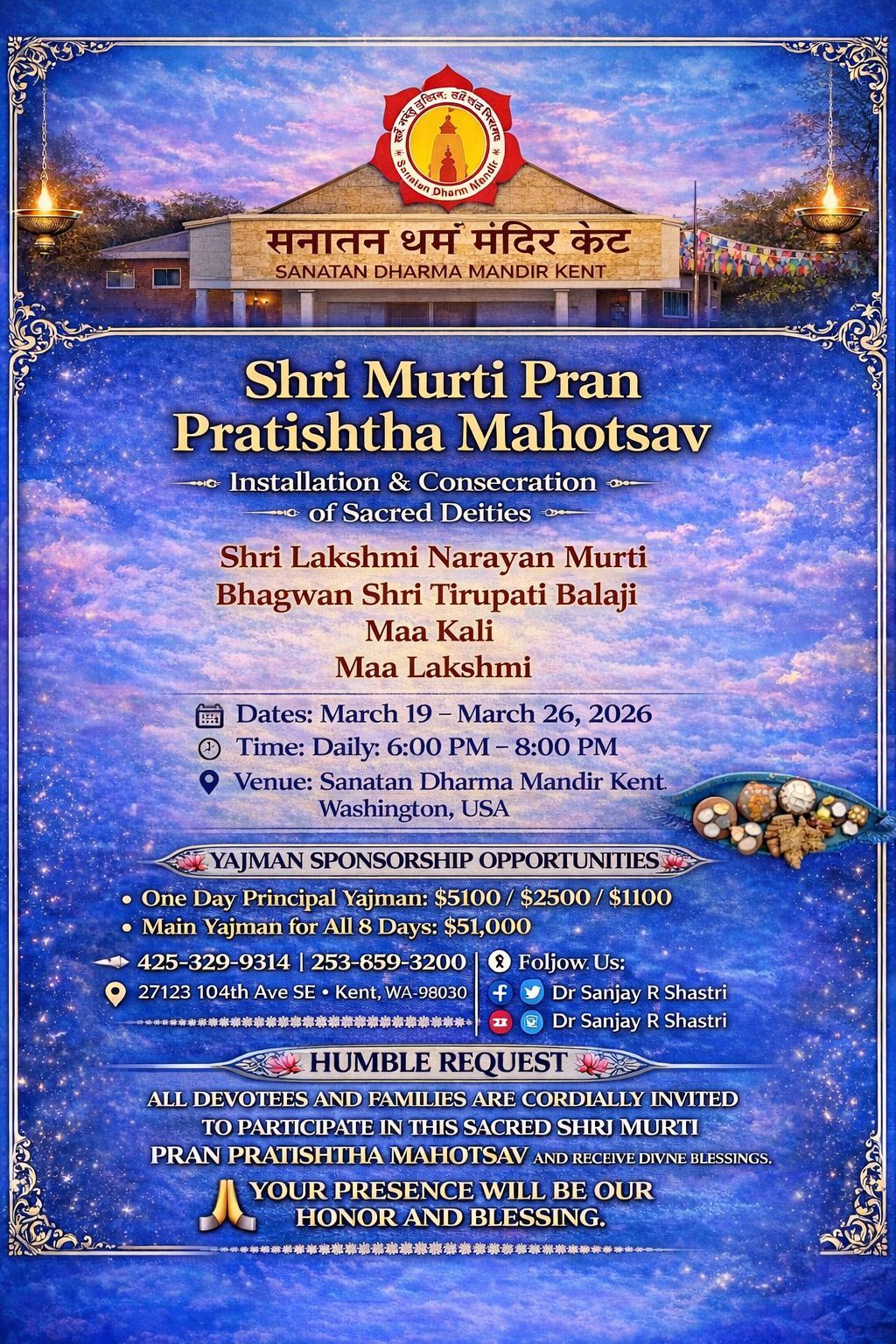 - Daily Aarti: Prabhat - 11:30 AM & Sandhya - 7:00 PM