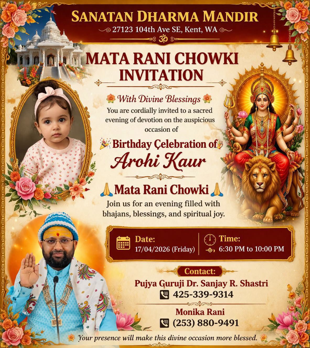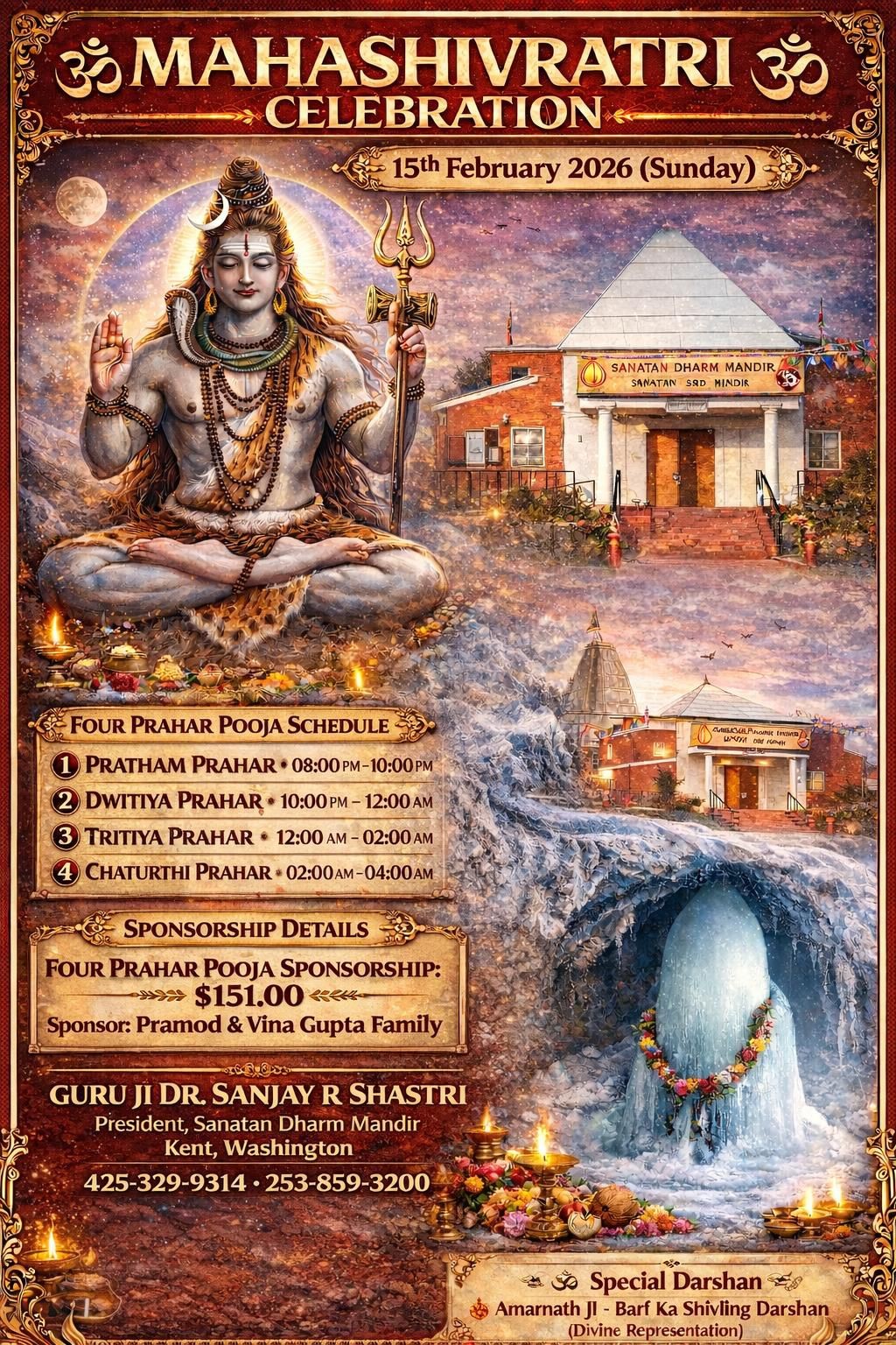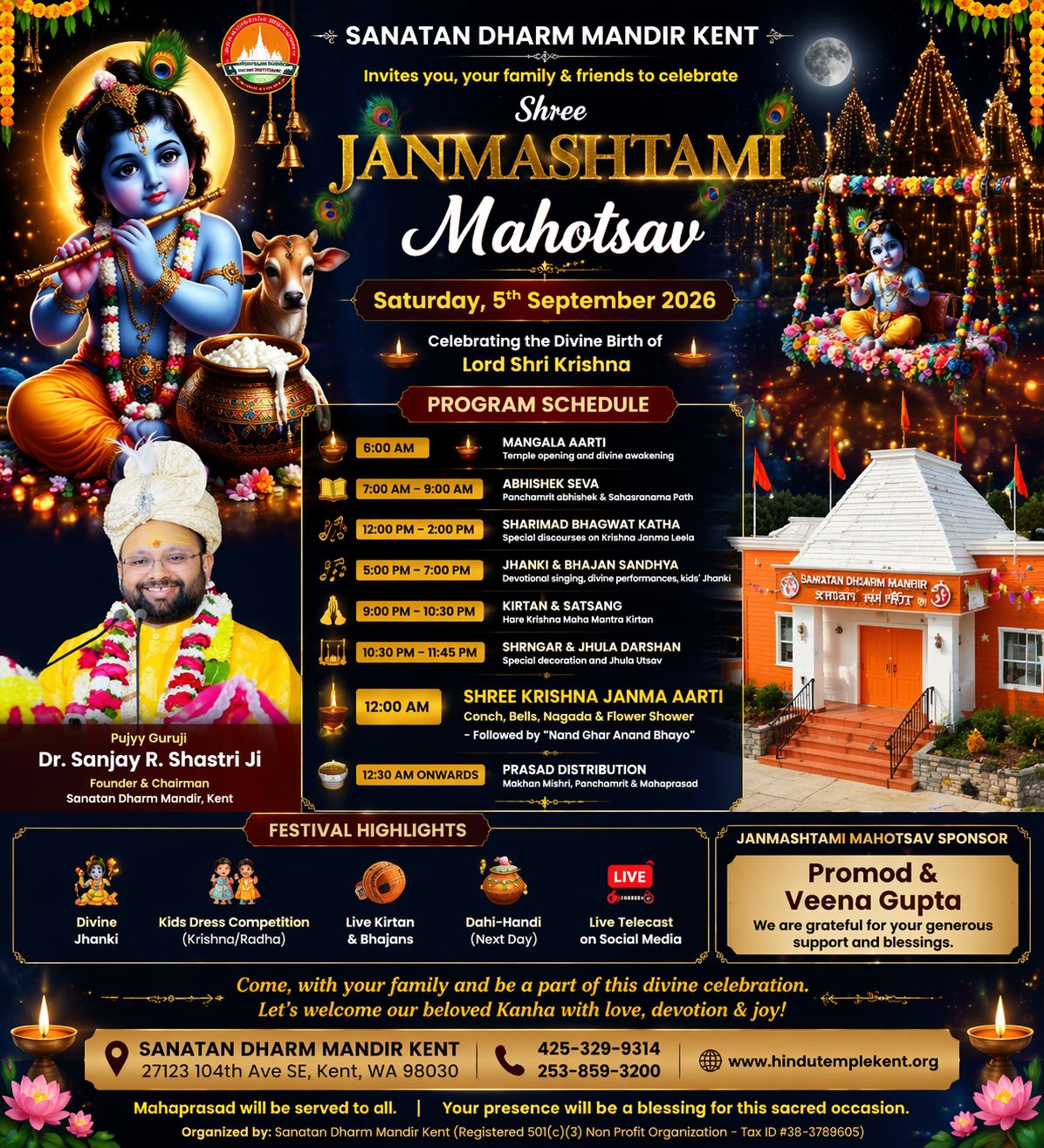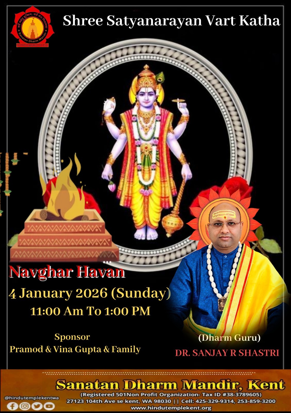 - Daily Aarti: Prabhat - 11:30 AM & Sandhya - 7:00 PM
