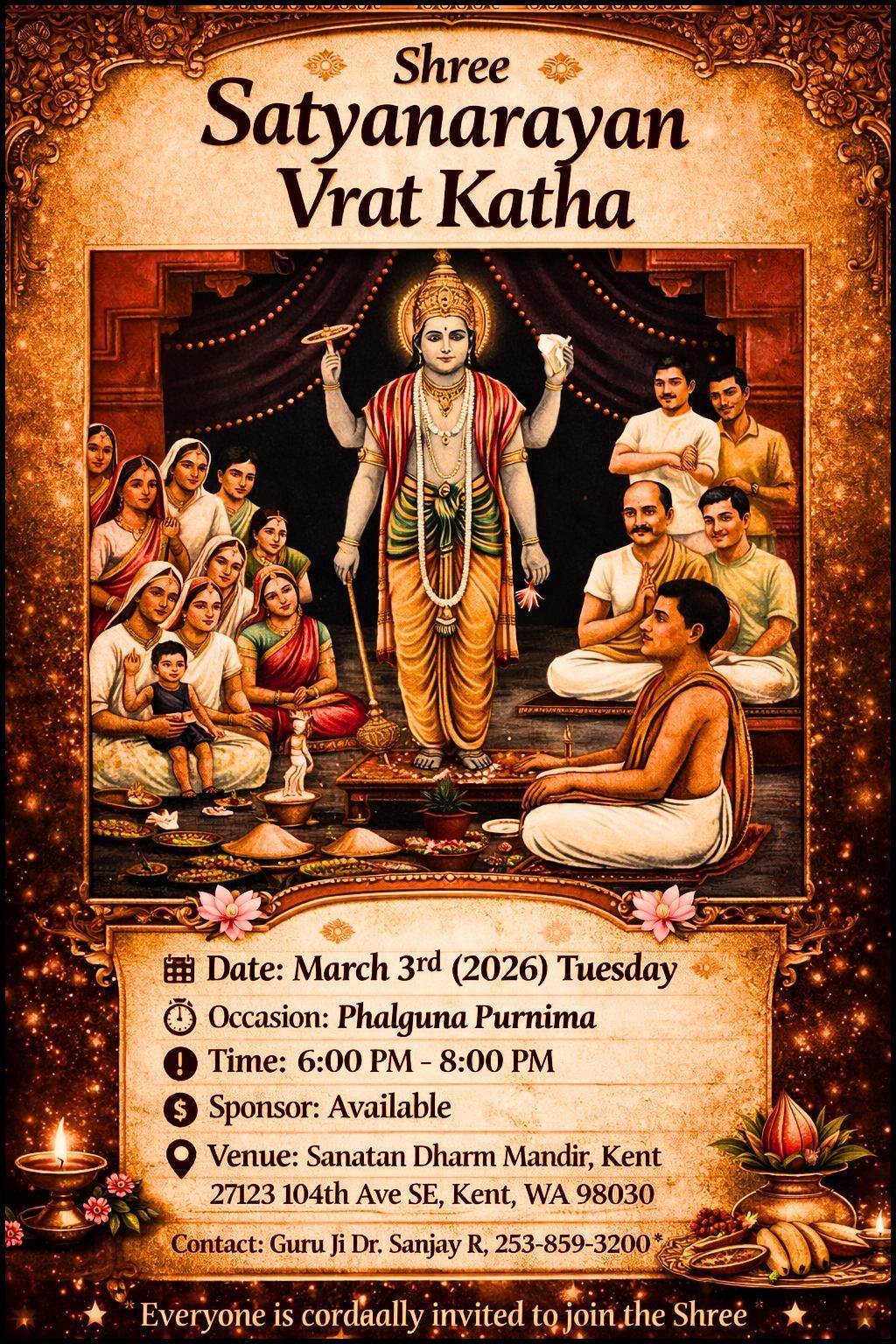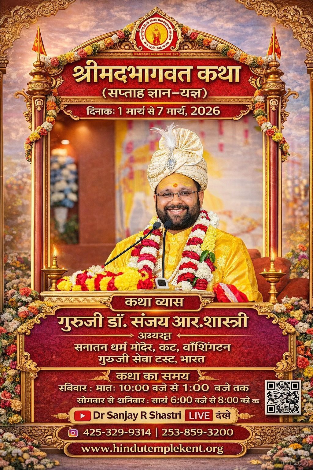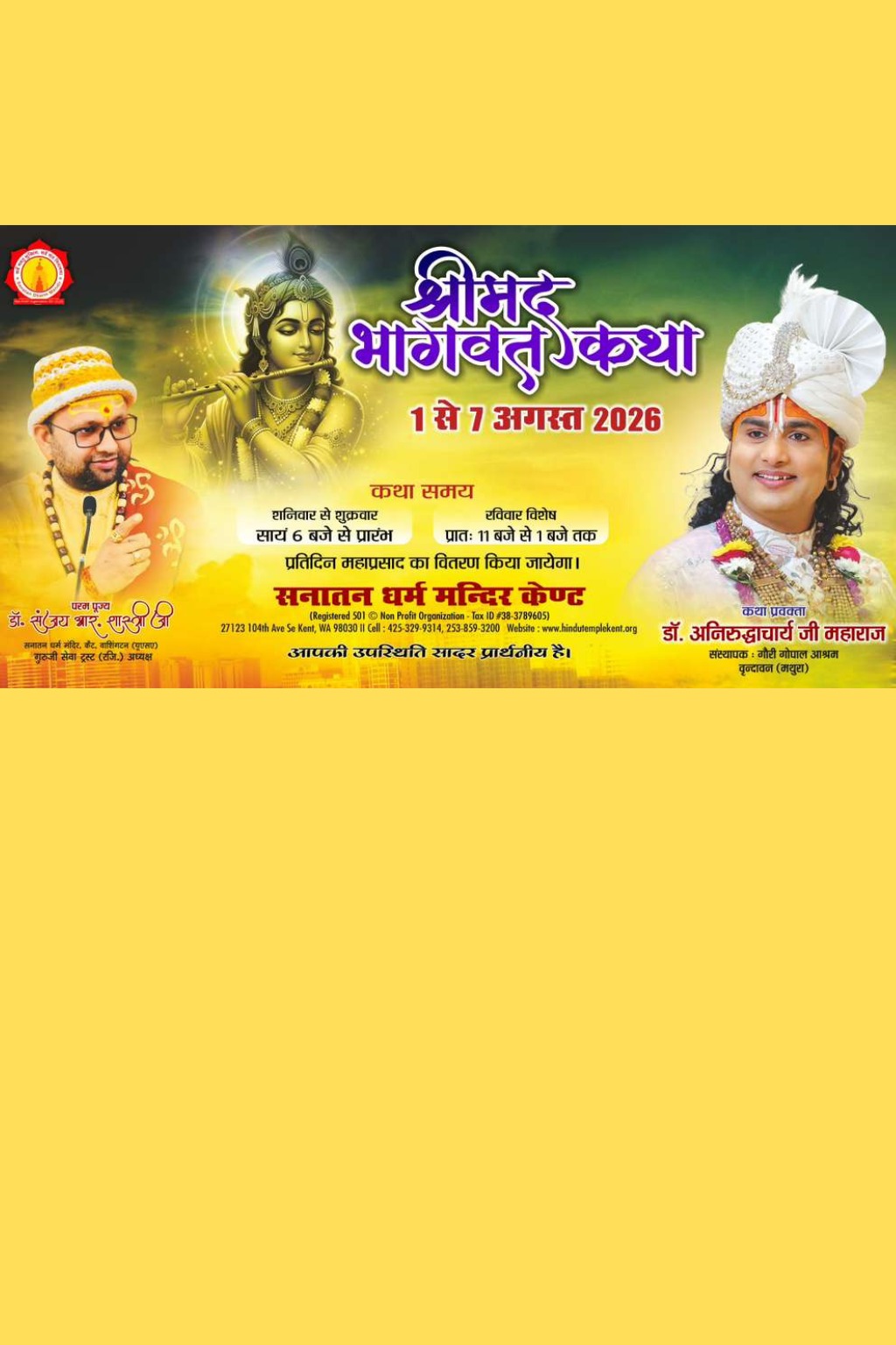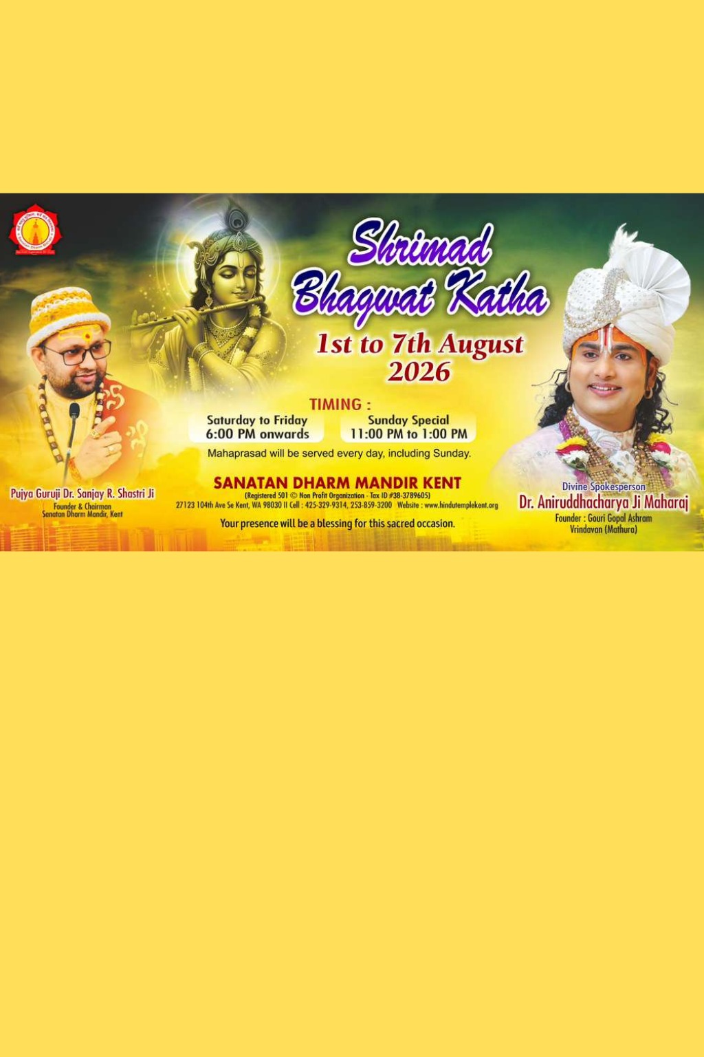 - Sunday - 11:00 AM - 1:00 PM Bhagwad Katha